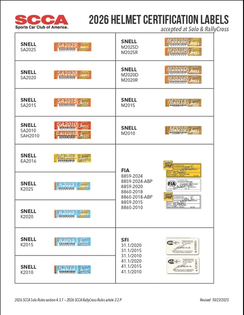 It is strongly recommended that competitors bring their own helmets, please see the SCCA Solo Helmet certifications to ensure that your helmet meets the requirements.